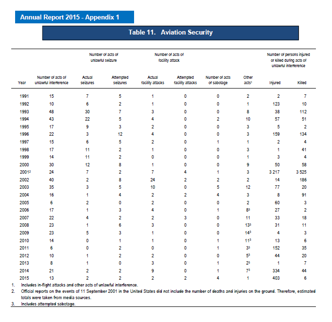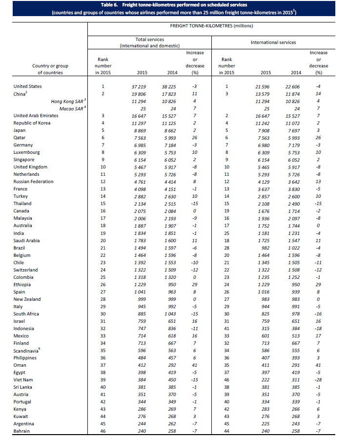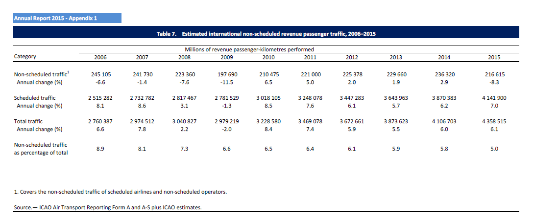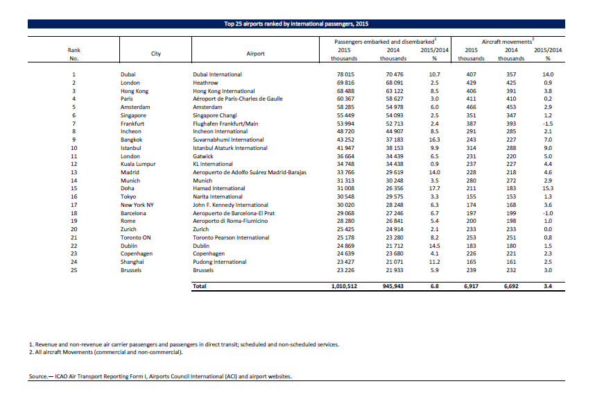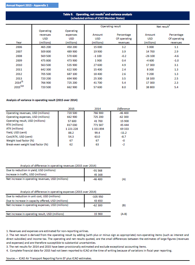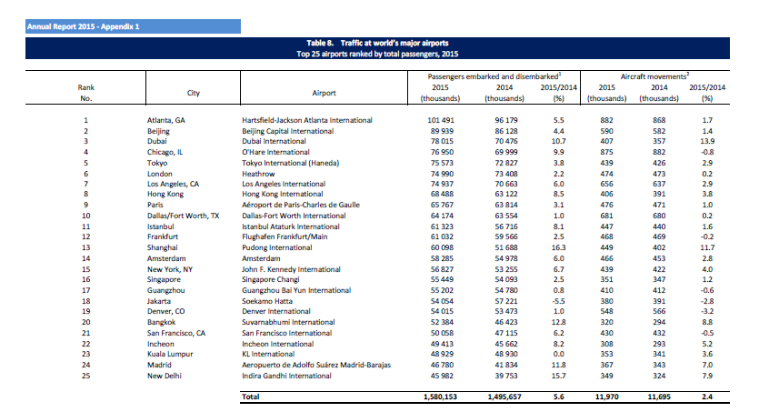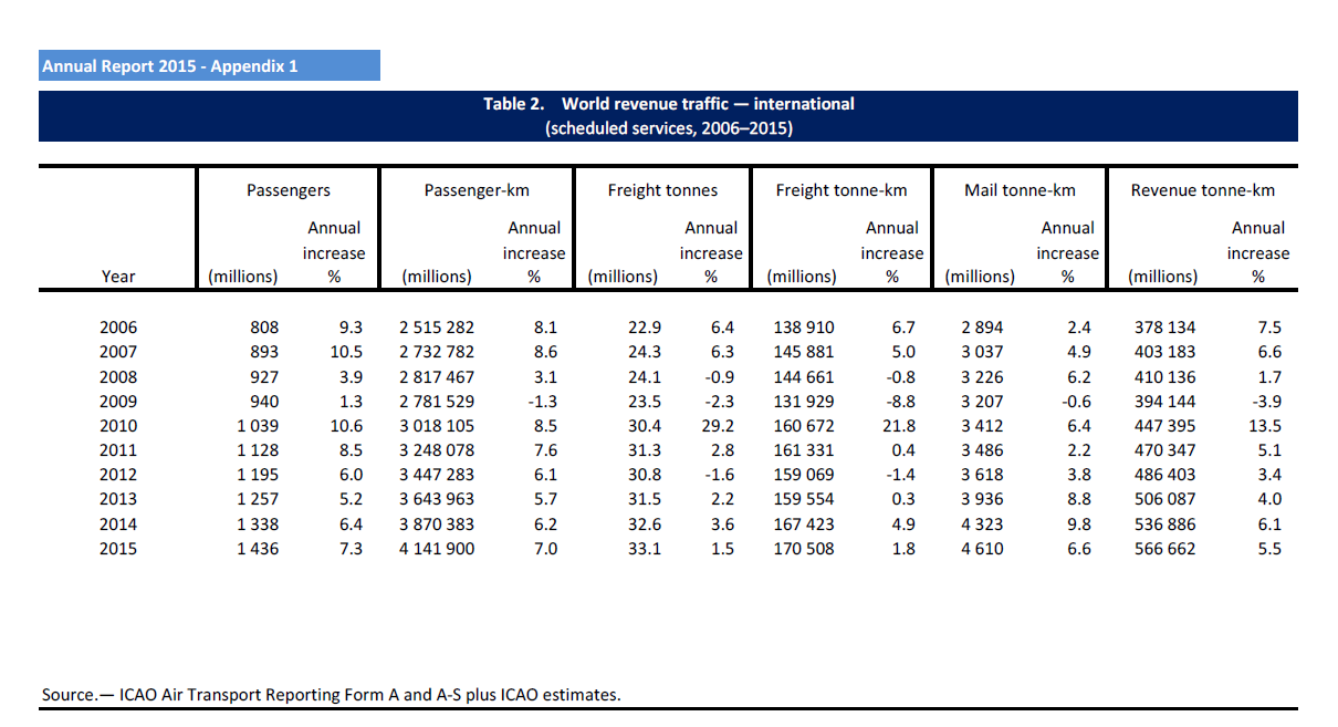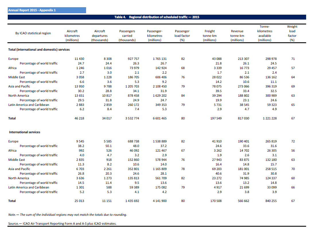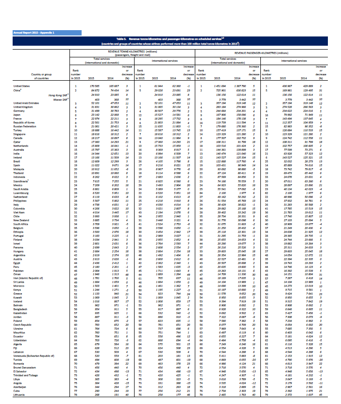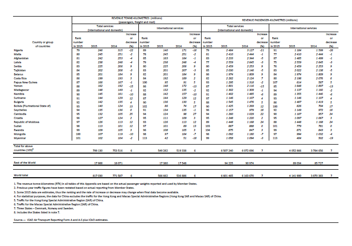 APPENDIX 1. TABLES RELATING TO THE WORLD OF AIR TRANSPORT IN 2015