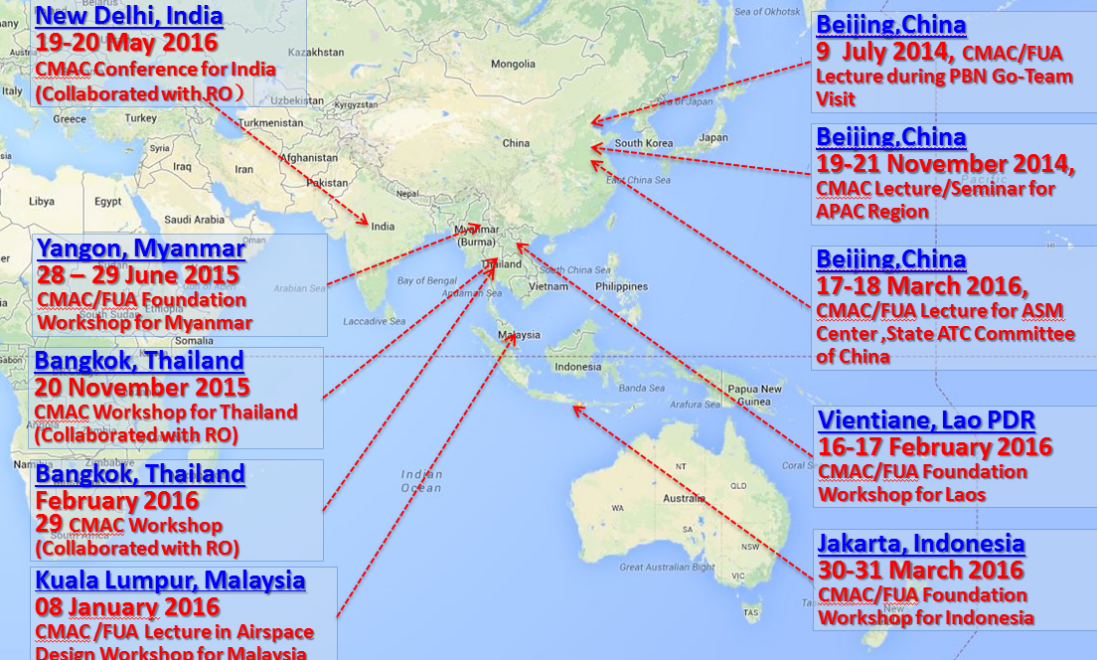 APAC RSO has supported States on enhancing Civil and Military ATM Cooperation and implementing Flexible Use of Airspace through delivering various CMAC/FUA Workshops, organizing CMAC/FUA Seminar and working together with States on specific CMAC/FUA projects.