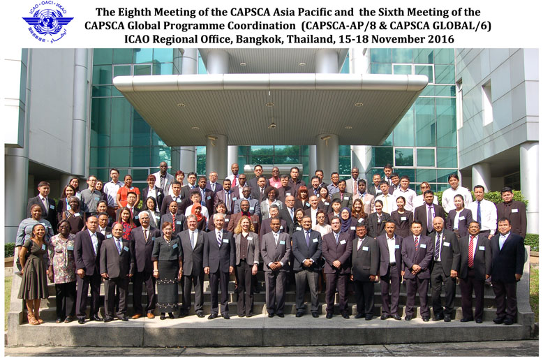 CAPSCA EIGHTH ASIA PACIFIC AND SIXTH GLOBAL COORDINATION MEETING (15-18 NOVEMBER 2016, BANGKOK, THAILAND) The Eighth Asia Pacific Regional Meeting of the ICAO Collaborative Arrangement for the Prevention and Management of Public Health Events in Civil Aviation (CAPSCA-AP/8) and the Sixth CAPSCA Global Coordination Meeting (CAPSCA GLOBAL/6) were co-convened by International Civil Aviation Organization (ICAO) and World Health Organization (WHO) from 15 to 18 November 2016 at ICAO Asia and Pacific Regional Office (ICAO APAC) in Bangkok, Thailand. The meeting was attended by a total of eighty seven (87) participants from twenty eight (28) States (Bangladesh, Bhutan, Burkina Faso, China, Côte D'Ivoire, Ghana, Hong Kong China, Macao China, Indonesia, Italy, Kazakhstan, Kenya, Lao PDR, Malaysia, Mexico, Nepal, Nigeria, the Philippines, Republic Of South Africa, Singapore, Sri Lanka, Swaziland, Thailand, Togo, Uganda, United Arab Emirates, Viet Nam and Zambia) and five (5) International Organizations (WHO, ACI, CDC, IFALPA and IOM) and a Private Sector (Allied Aviation Co., Ltd.). The meeting participants shared their expertise in ICAO workshops (Tools for management of communicable disease / Capacity building and CAPSCA training) and WHO workshop (case study on board an aircraft arriving from a country with Ebola Virus Disease transmission to a non-affected country). All documents are available at: http://www.icao.int/APAC/Meetings/Pages/2016-CAPSCA.aspx