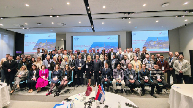 The ICAO EUR/NAT Cybersecurity Seminar brought together 85 participants, with over half actively engaging in a hands-on practical exercise designed to strengthen operational understanding of cybersecurity challenges. The event was opened by Mrs. Mirjana Cizmarov, Director General of the Civil Aviation Directorate of Serbia, and Mr. Elkhan Nahmadov, ICAO EUR/NAT Deputy Regional Director of ICAO, who also served as Master of Ceremonies.