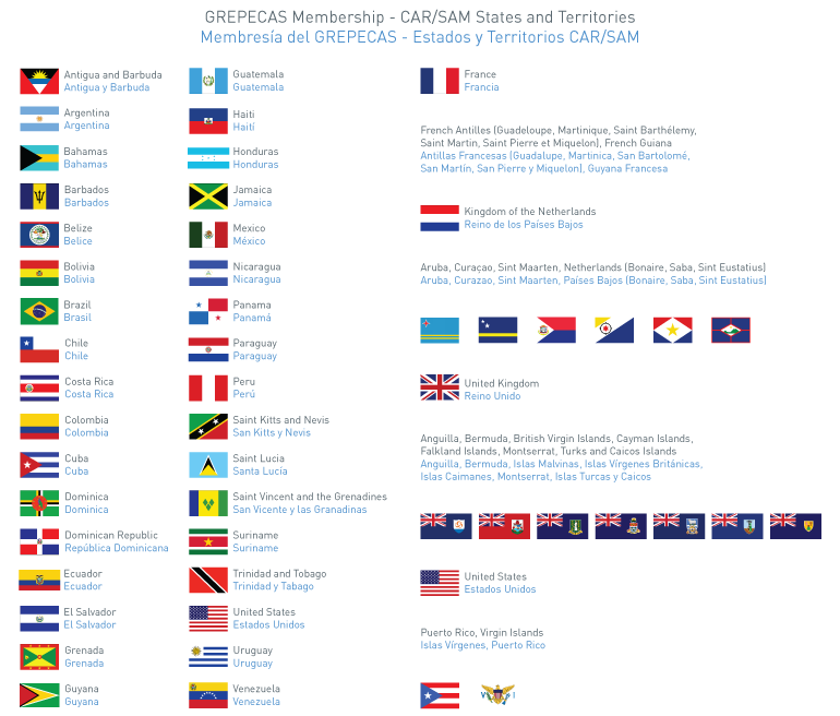 El GREPECAS incluye todos los Estados contratantes y Territorios de la OACI, que brindan servicios de navegación aérea en las Regiones CAR/SAM. Las Organizaciones Internacionales reconocidas por el Consejo pueden ser invitadas según sea necesario para asistir a las reuniones del GREPECAS en calidad de Observadores. Adicionalmente, un grupo de Estados puede optar por tener una representación común.