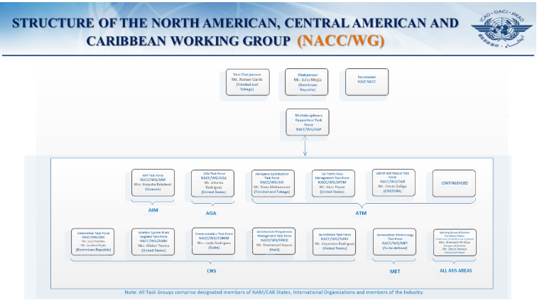 The NACC/WG is the only regional implementation mechanism in the region, integrating all the Task Forces of the different air navigation areas and it is the mechanism through which the region reports its level of implementation.