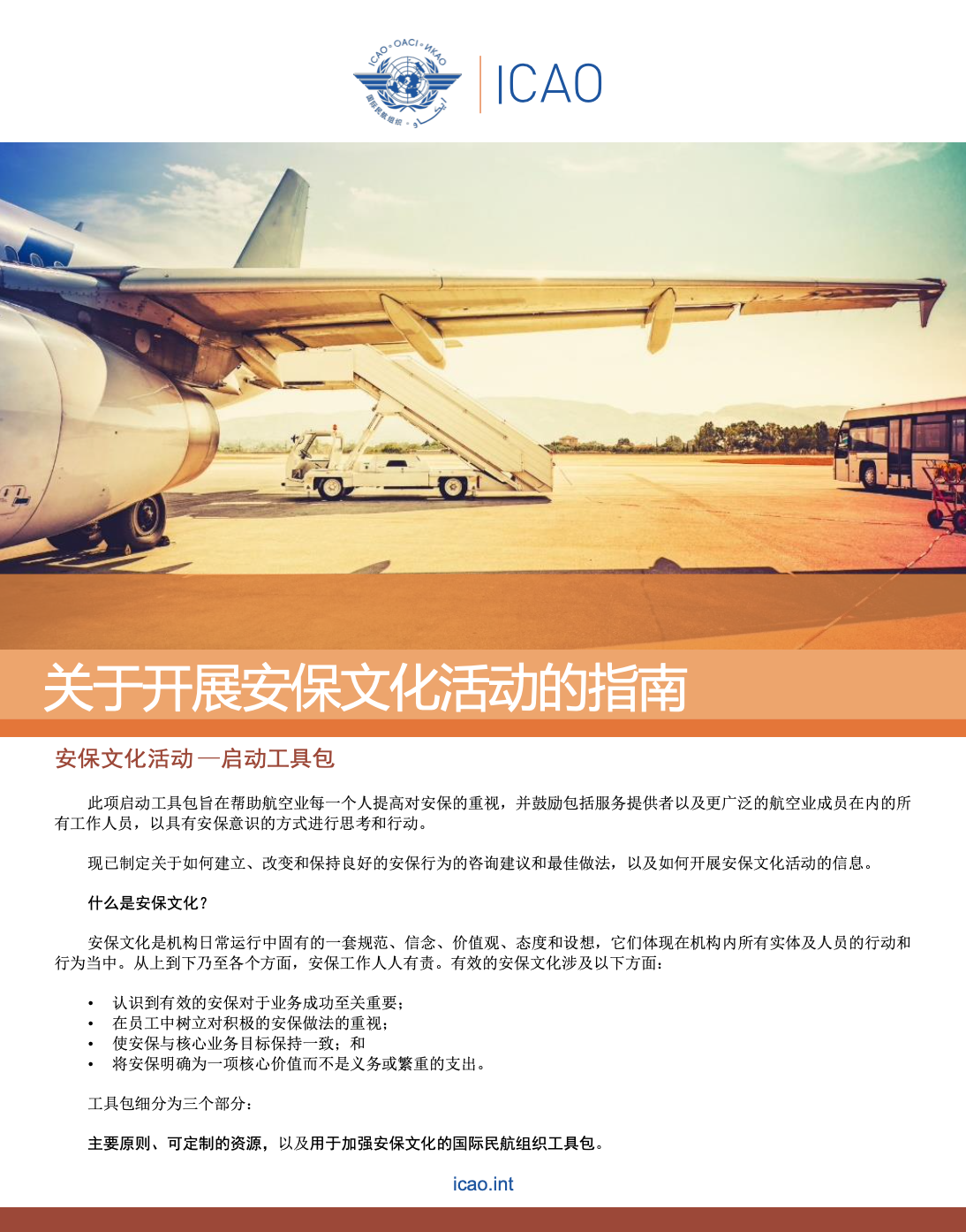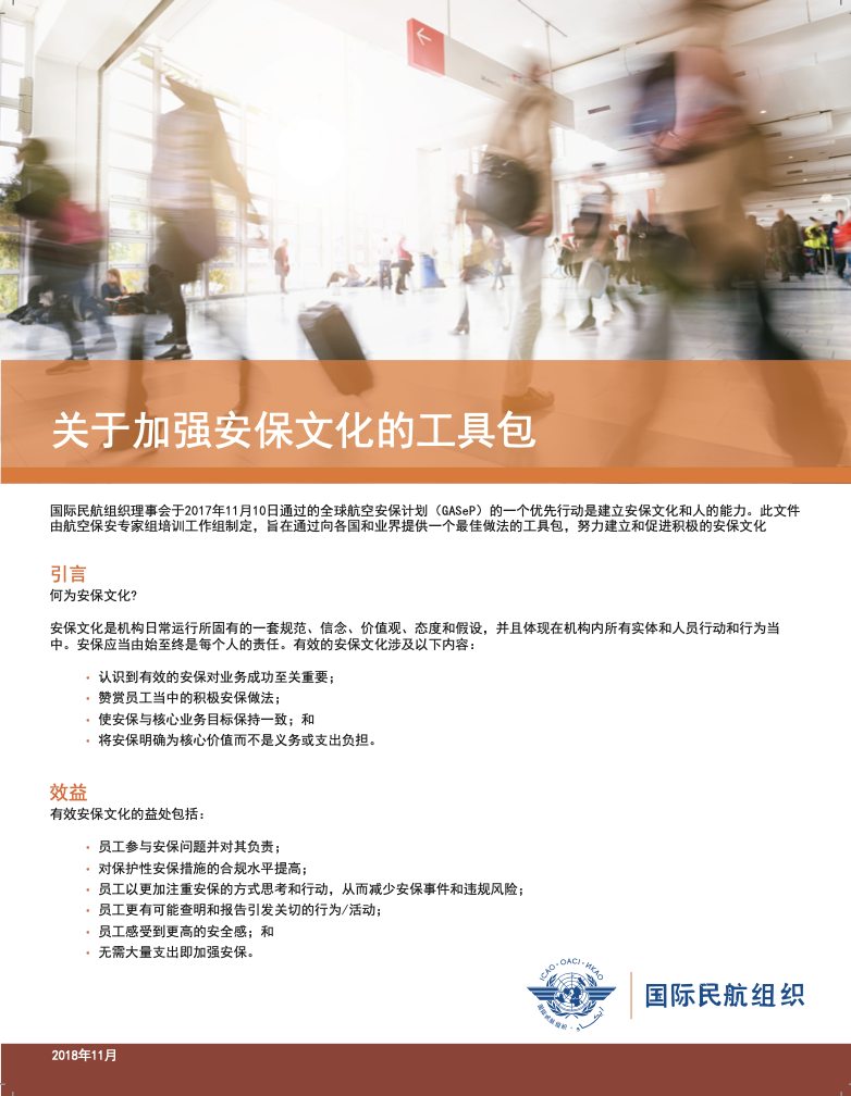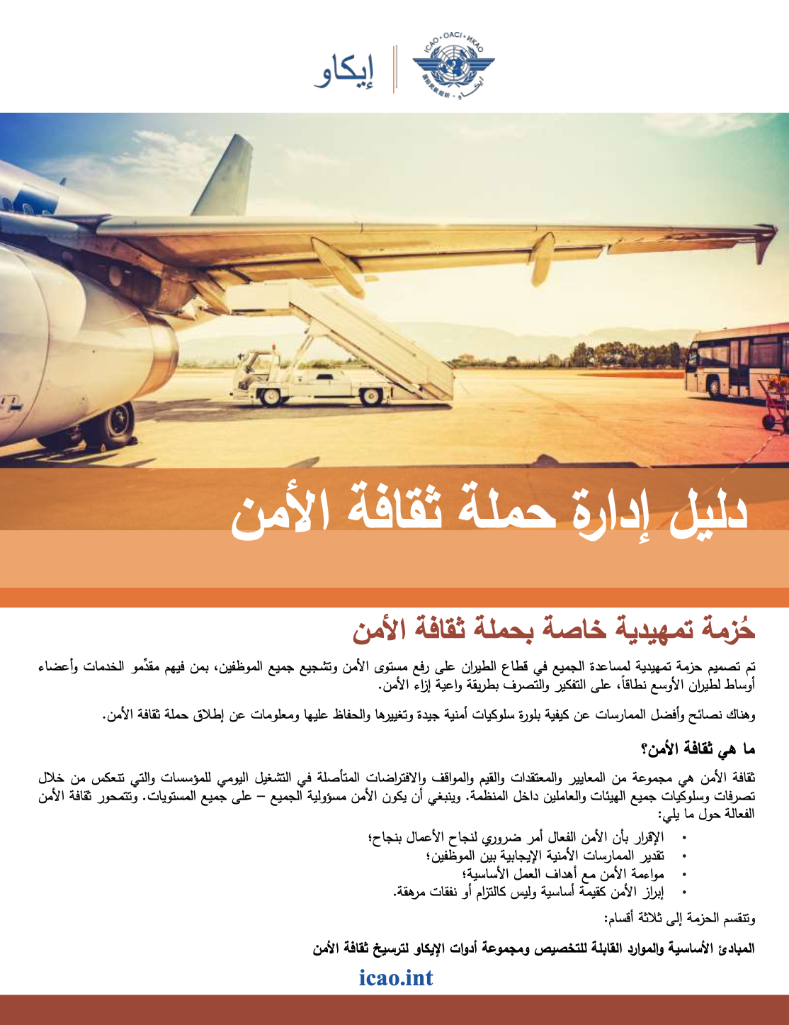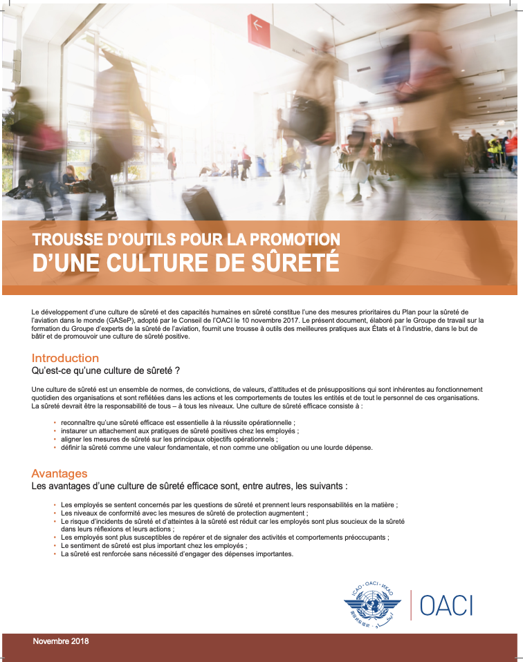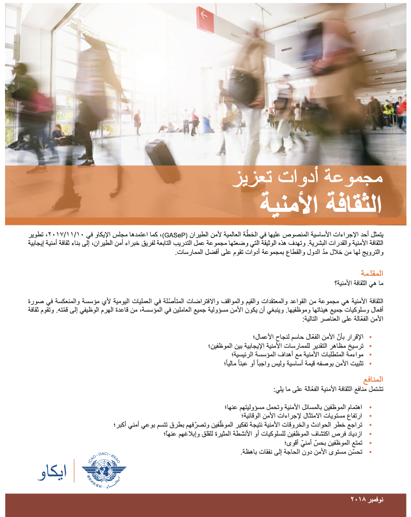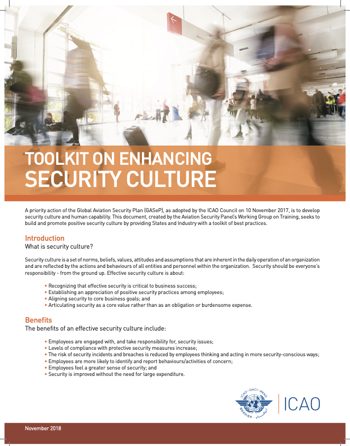 In conjunction with the ICAO AVSEC Panel’s Working Group on Training, ICAO has produced a Toolkit on Enhancing Security Culture in each of the ICAO languages.