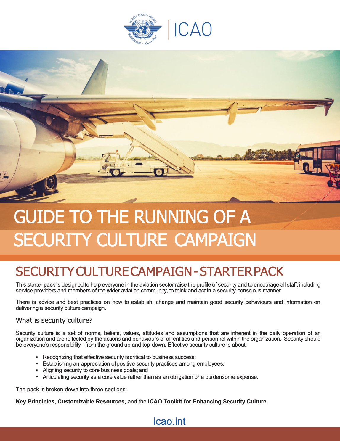 In conjunction with the ICAO AVSEC Panel’s Working Group on Training, ICAO has produced a Security Culture Campaign Starter Pack in each of the ICAO languages.