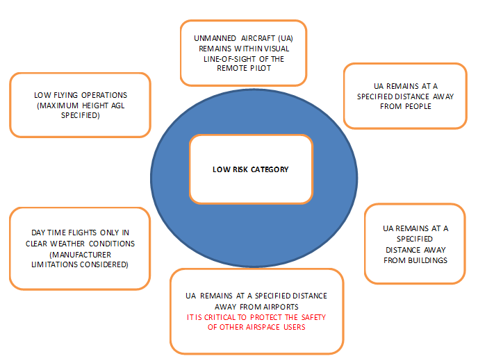 There are many UAS which pose limited risk to other airspace users as well as people and property on the ground. Attempting to have thorough regulatory involvement with this vast “low risk” category may lead to the regulatory authority being inundated with requests, thus not being able to regulate effectively and therefore resulting in more unauthorized operations.