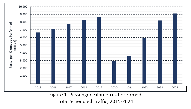 According to ICAO’s preliminary compilation of annual global statistics, the total number of passengers carried on scheduled services increased to 4.7 billion in 2024, which is 7.9 per cent higher than the previous year, while with the number of departures increasing to 37.4 million in 2024, a 5.1 per cent increase. Detailed air transport statistics appear on the Presentation of 2024 Air Transport Statistical Results page.