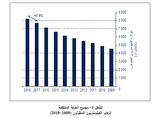 زيادة إجمالية بنسبة 7.1 في المائة، أي ما يعادل 258 8 مليار راكب كيلومتري إيرادي