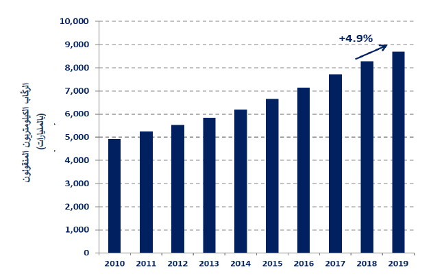 زيادة إجمالية بنسبة 4.9 في المائة، أي ما يعادل 686 8 مليار راكب كيلومتري إيرادي