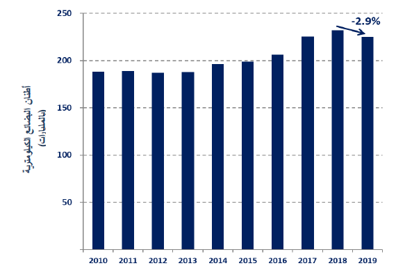 | الشرق الأوسط: | 15.9 في المائة من مجموع أطنان البضائع الكيلومترية المنقولة، ما يمثل انخفاضاً بنسبة 4.4- في المائة |