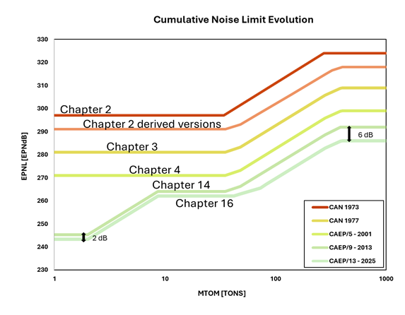 The ICAO Council adopted on 27 March 2026 new Annex 16 Volume I Standard noise limits [Chapter 16] that are more stringent by six decibels for large aircraft types, and two decibels for smaller ones. This new more stringent noise standard is applicable to new aircraft type designs as of 2029.
