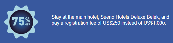 To take advantage of the 75% discount on registration by staying at Sueno Hotels Deluxe Belek, please follow the below instructions:
