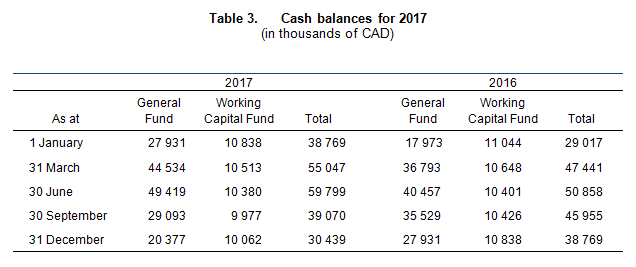 As shown in Table 2, the final appropriation for 2017 was adjusted to CAD 95 078 000, as a result of: