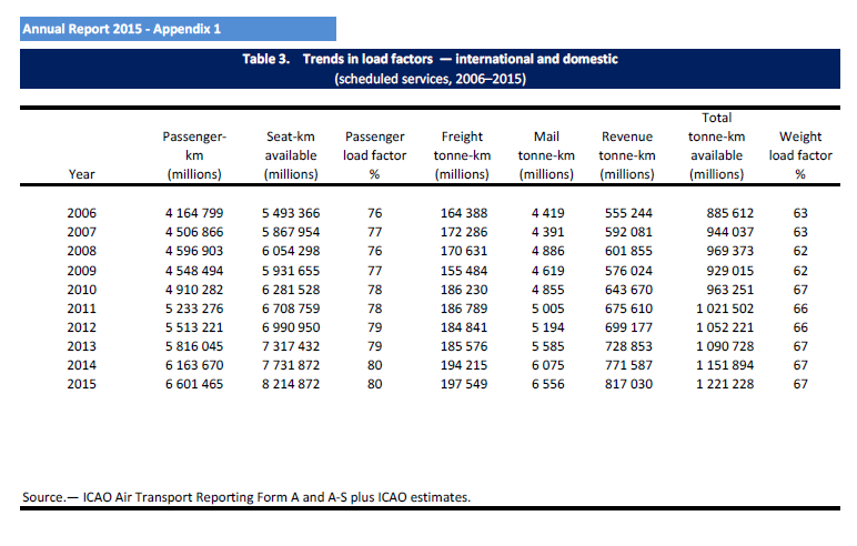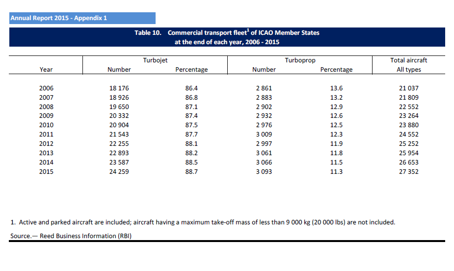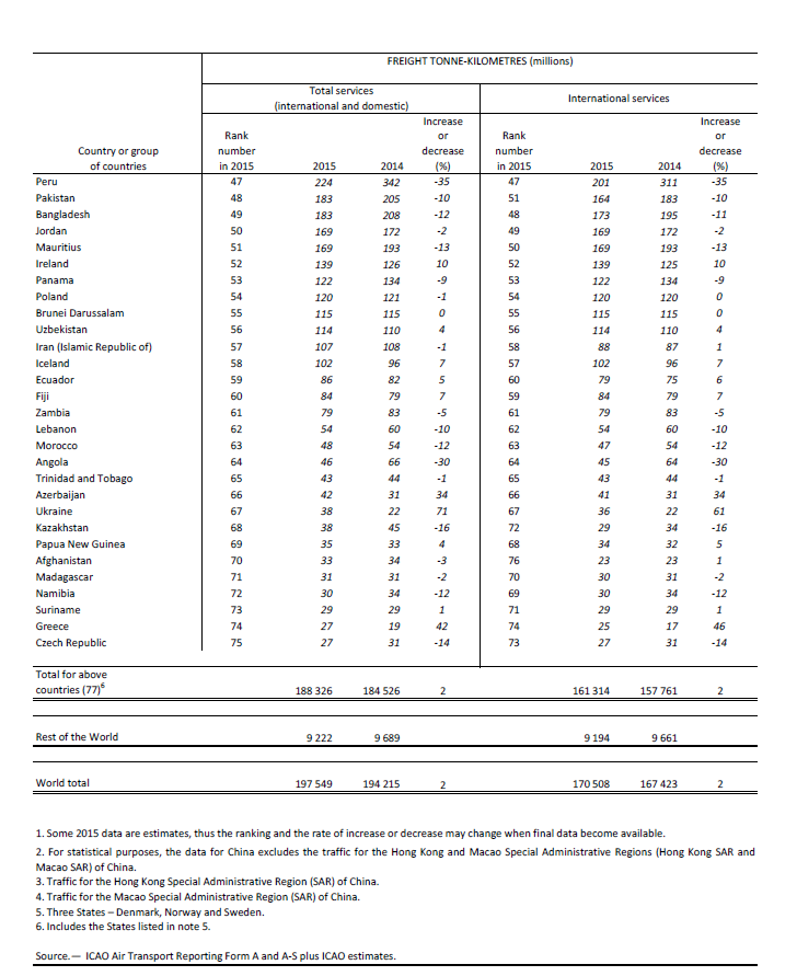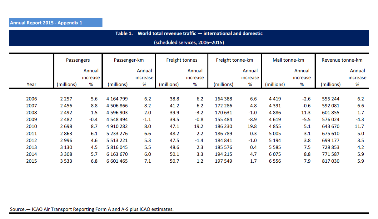 APPENDIX 1. TABLES RELATING TO THE WORLD OF AIR TRANSPORT IN 2015