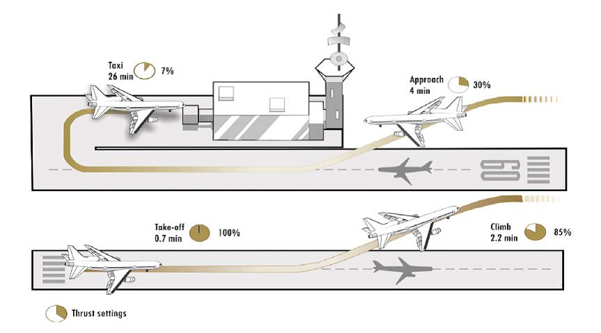 Figure 1 - Illustration of ICAO emissions certification procedure representing the LTO cycle
