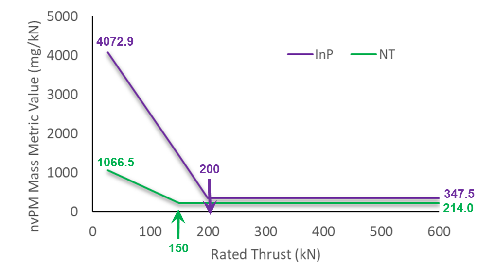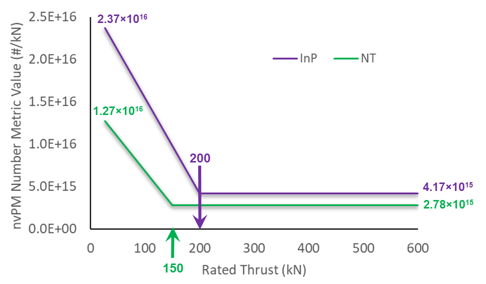 This new Standard was adopted by the ICAO Council in March 2020. The new Standard is applicable from 1 January 2023 onwards to new type and in-production engines with rated thrust greater than 26.7kN. The limit lines for nvPM mass and number provide some alleviation for engines with rated thrusts below 150kN. The new nvPM mass and number limit lines are presented on Figure 2.