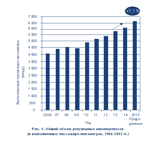 По собранным ИКАО предварительным данным мировой статистики общее количество пассажиров, перевезенных на регулярных рейсах в 2015 году, выросло до 3,5 млрд , что на 6,8 % выше, чем в предыдущем году, а количество отправлений воздушных судов в 2015 году достигло 34 млн, что на 2,6 % больше по сравнению с 2014 годом. Подробные статистические данные по воздушному транспорту приведены в добавлении 1.