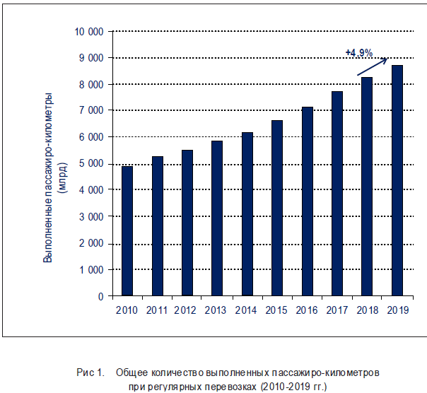 Пассажирские перевозки (общее количество выполненных коммерческих пассажиро-километров (КПК) на регулярных рейсах)