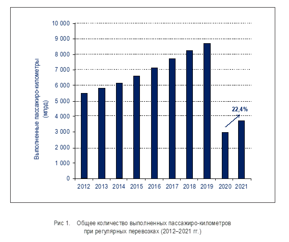 Согласно подготовленной ИКАО предварительной компиляции годовых глобальных статистических данных общее число пассажиров, перевезенных регулярными рейсами, в 2021 году возросло до 2,3 млрд, что на 28,1 % больше, чем в предыдущем году, а количество вылетов в 2021 году возросло до 24,2 млн, что представляет собой увеличение на 19,2 %. Подробные статистические данные по воздушным перевозкам приводятся на странице "Статистические данные о результатах деятельности воздушного транспорта в 2021 году".