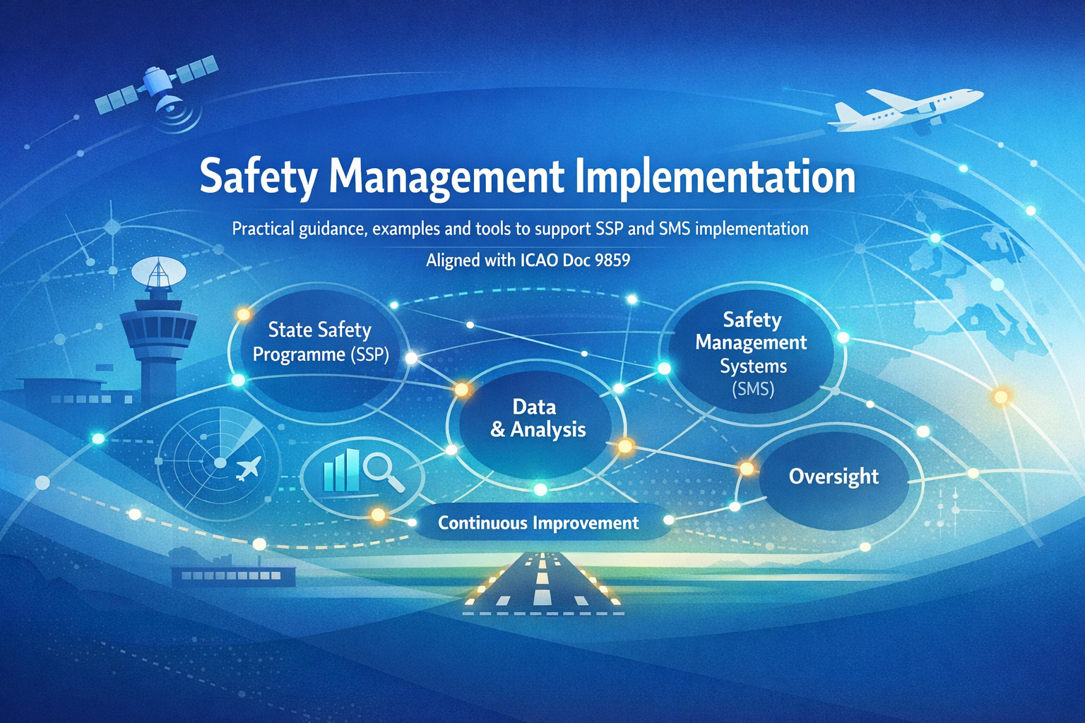 The fourth edition of the Safety Management Manual (SMM) (Doc 9859) was published in 2018. To further enhance the guidance provided in Doc 9859, ICAO developed a complementary website (www4.icao.int/SMI) which serves as a repository for the collection and sharing of the latest practical examples, tools and best practices collected from States, service providers and international organizations, to support the implementation of SSP and SMS.