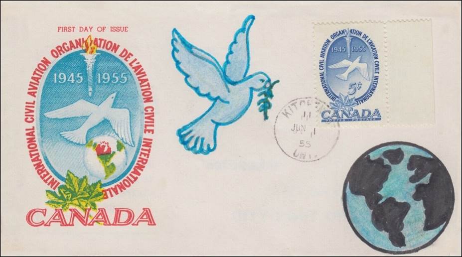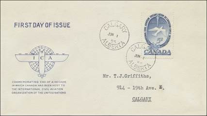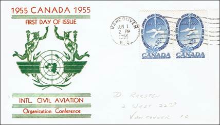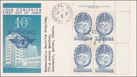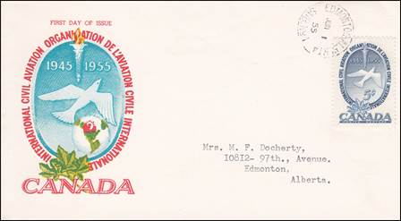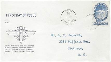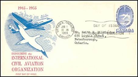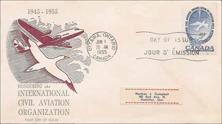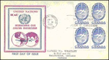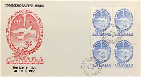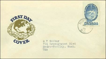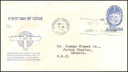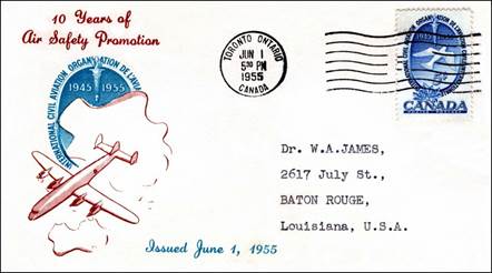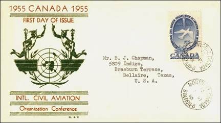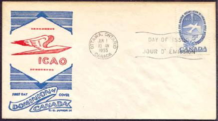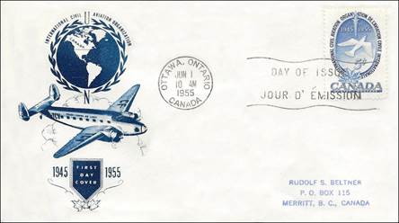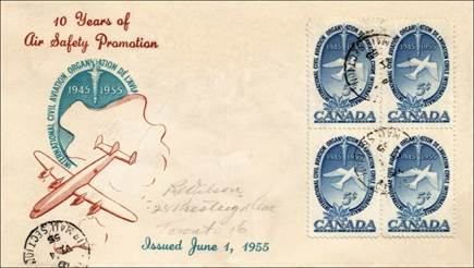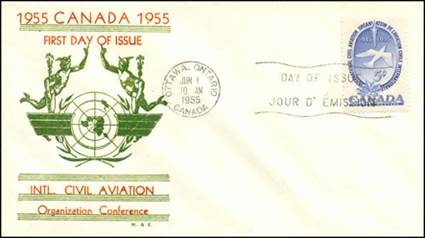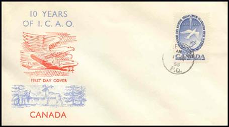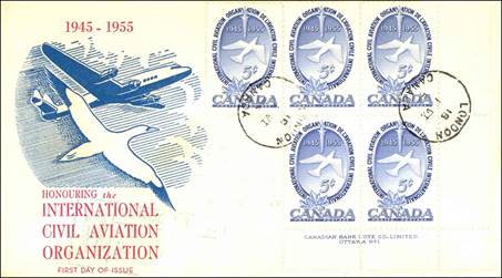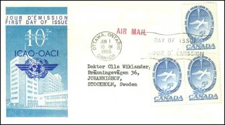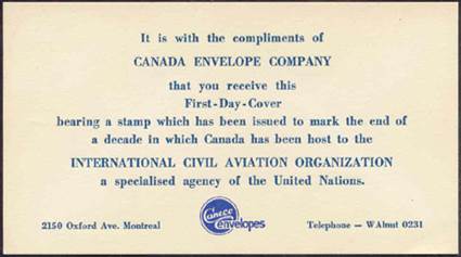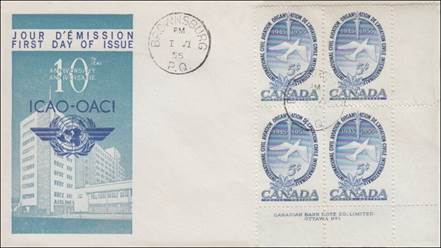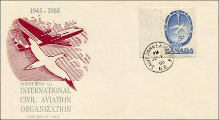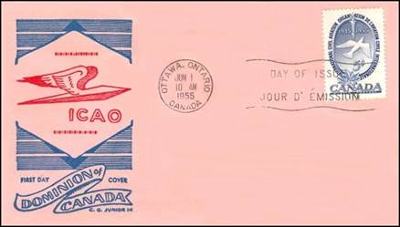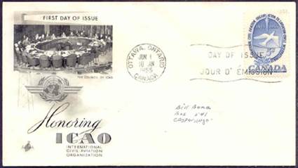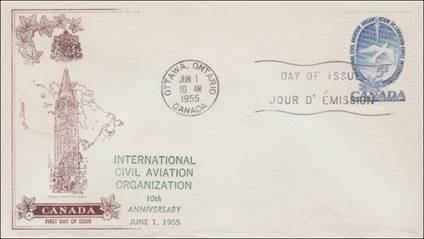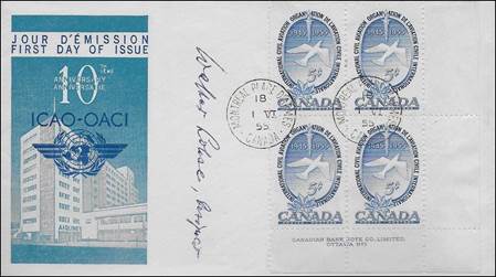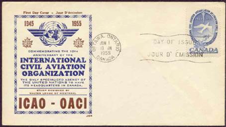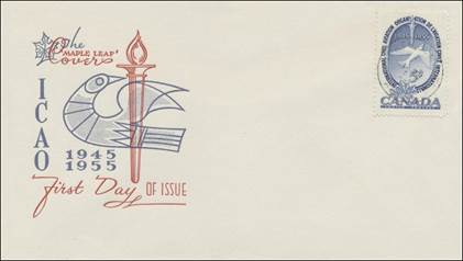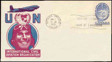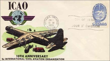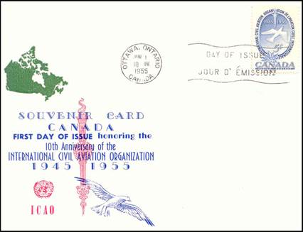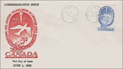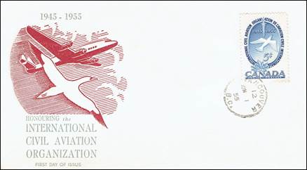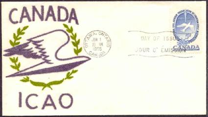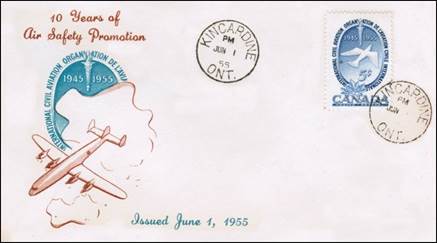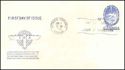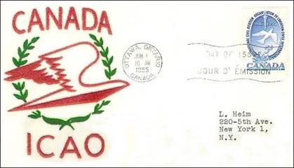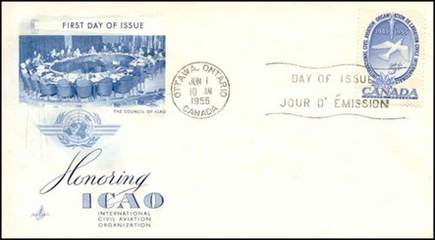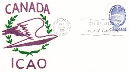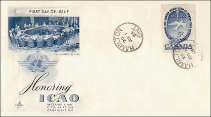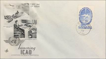 ICAO prepared a special cachet (Caneco Envelopes Company design) and first day cover with the stamp issued by Canada.