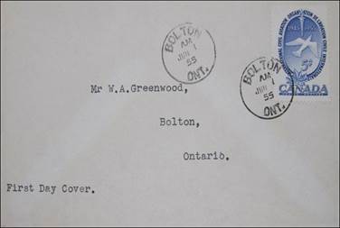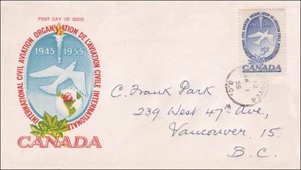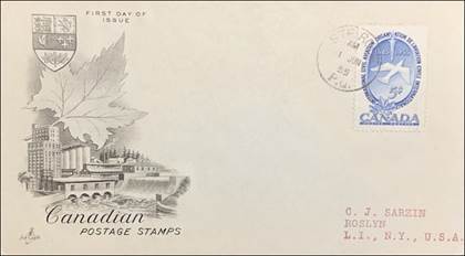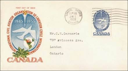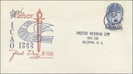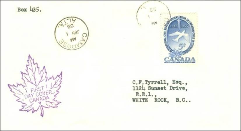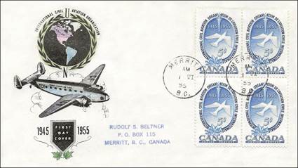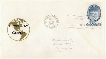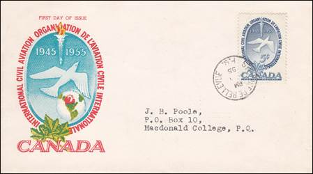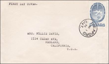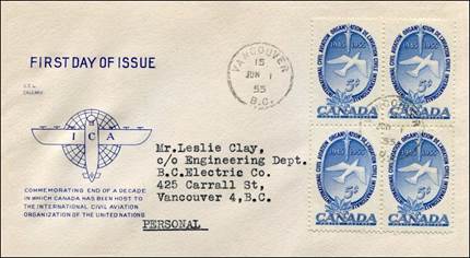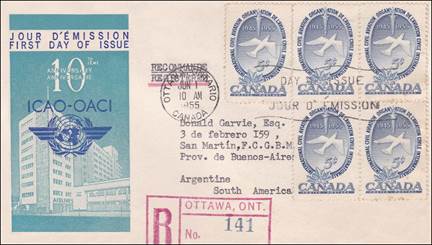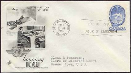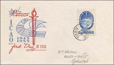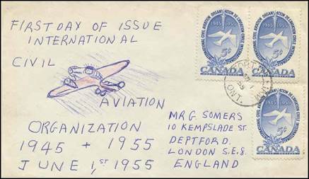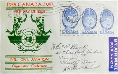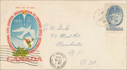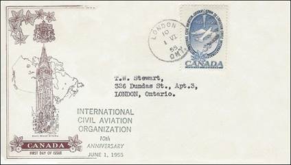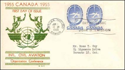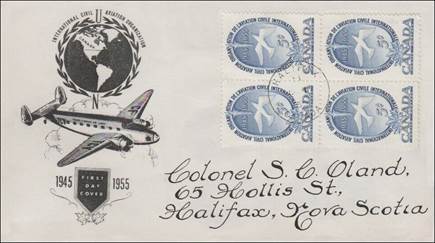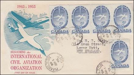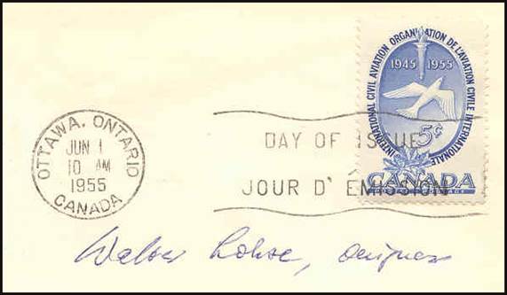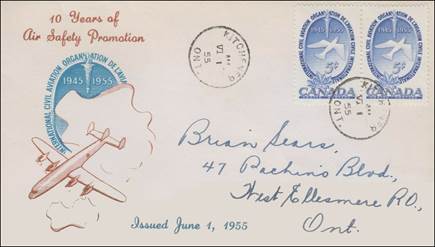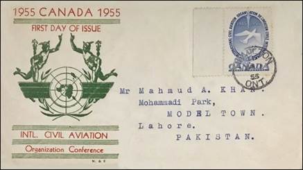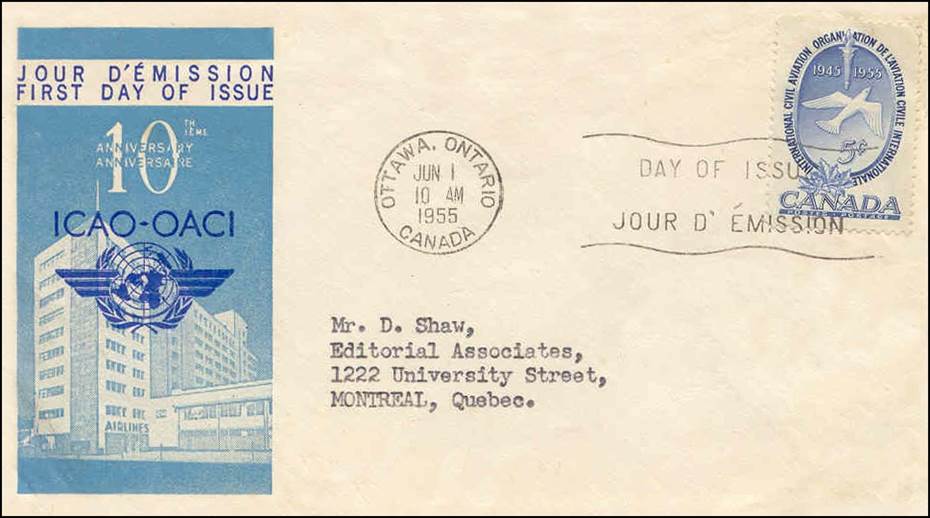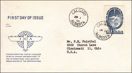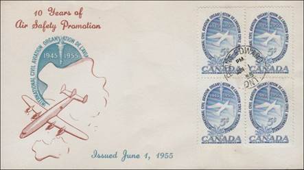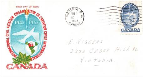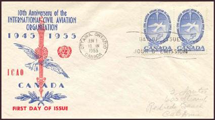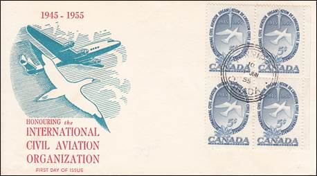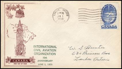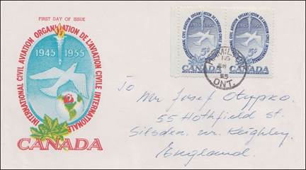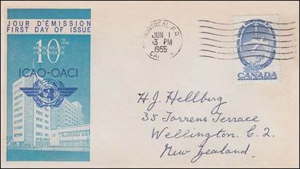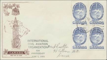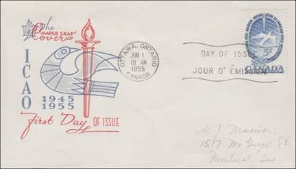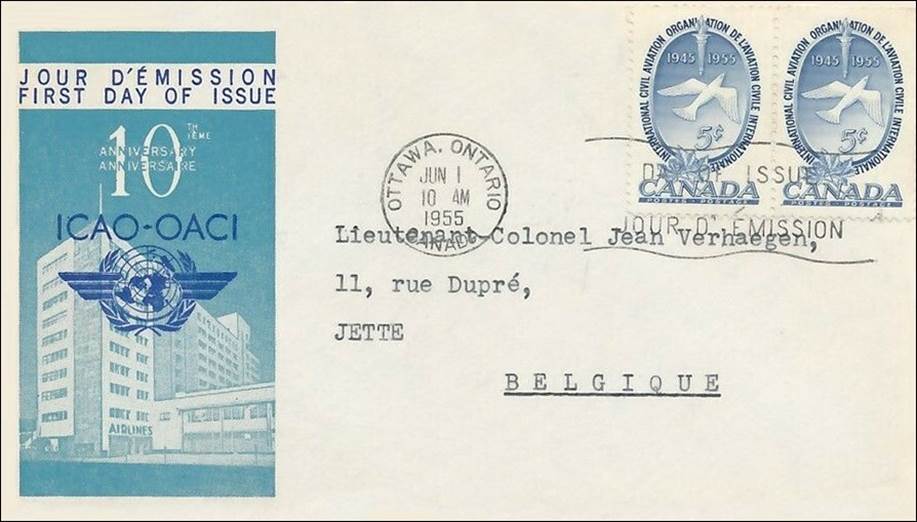 ICAO prepared a special cachet (Caneco Envelopes Company design) and first day cover with the stamp issued by Canada.