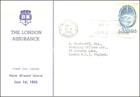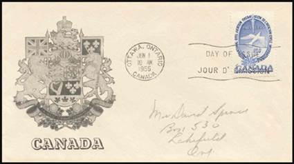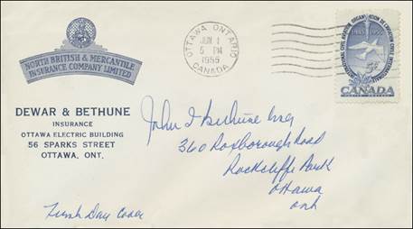 First Day Cover; cachet Dewar & Bethune Insurance. Cancel at Ottawa, Ontario. |