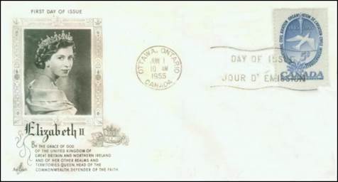 Private designers issued over fifty different first day covers with the Canadian stamp. Many of those covers are shown hereafter; the cachet makers are provided whenever identified. The official city of the postmark is OTTAWA in Ontario; however, this page also displays covers which bear postmarks of unofficial cities, i.e., others that Ottawa.