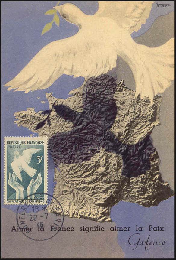 Maximum card and stamp issued for the Peace Conference held in Paris, France, from 29 July to 15 October 1946 |