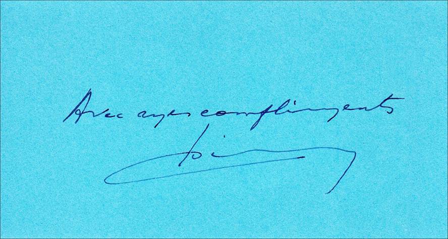 Special insert of the above cover: “Avec mes compliments”, signed by A.X. Pirson, Representative of Belgium on the Council of ICAO.
