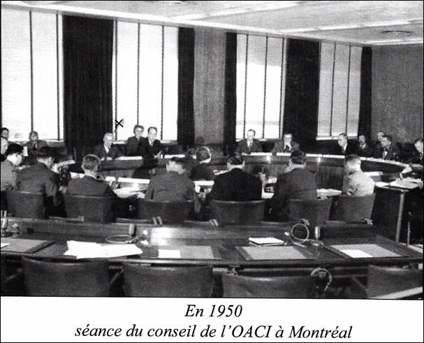 The picture shown on this cover corresponds to the Council in Session in the first Building on 1080 University Street. It is identical to the picture seen below (copied from one of ICAO Memorandums) shown under a difference angle, with open curtains and missing Member States flags.