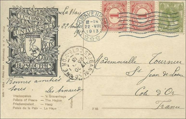 20th Universal Peace Congress held in The Hague from 18 to 23 August 1913. Photo Credit to the Journal of the United Nations Philatelists, Vol. 47 #2 April 2023.