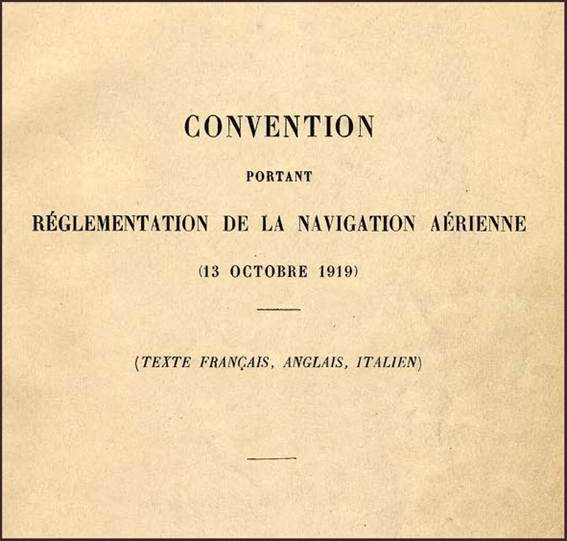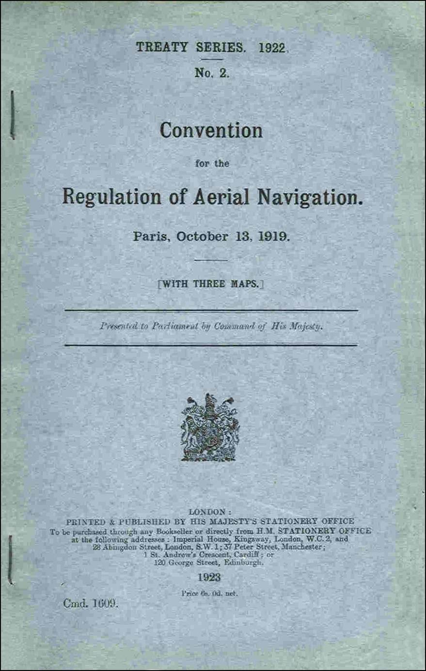 Copy of the front page of the Convention Relating to the Regulation of Air Navigation.