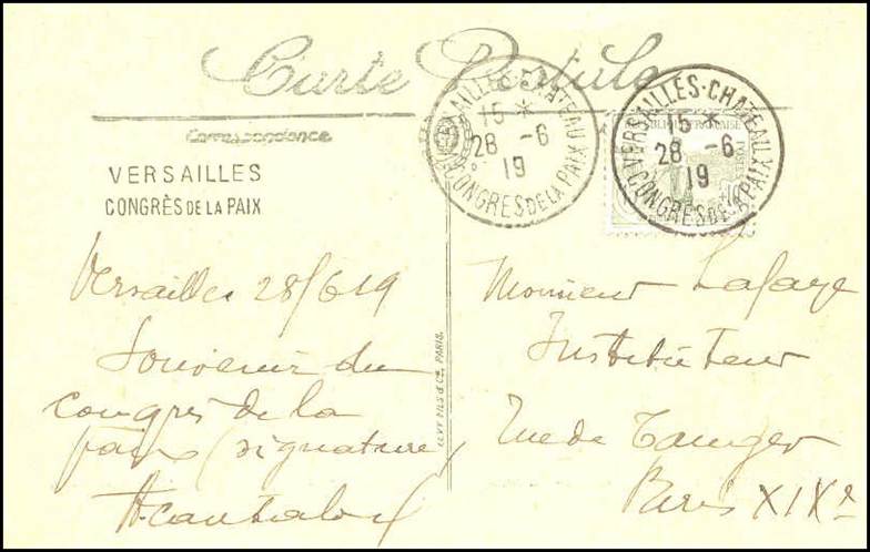 Postcard with hand-stamp: Versailles / Congrès de la paix |