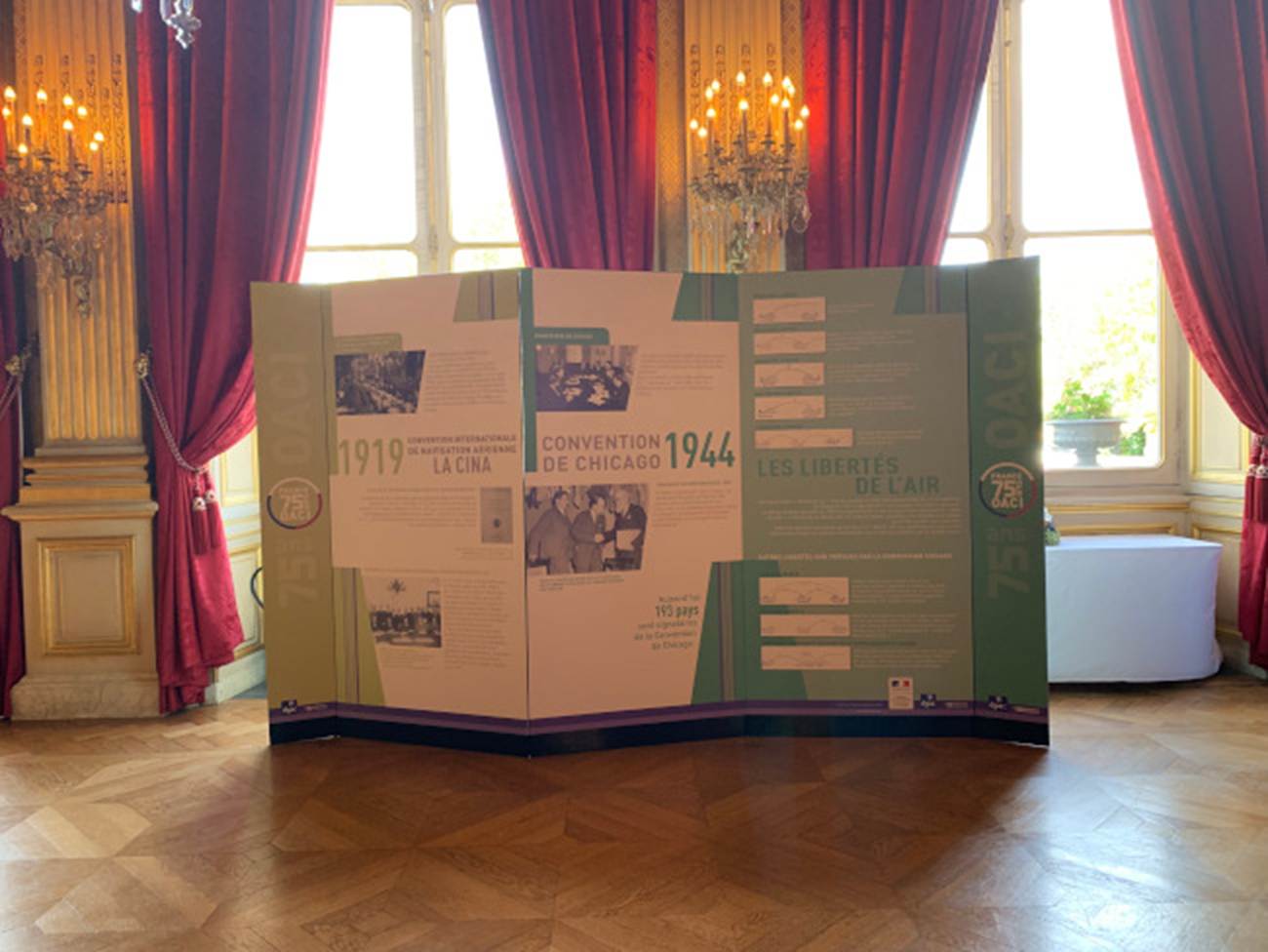 France: 2019 – Exhibition held in the Salon de l’Horloge to mark the 100th anniversary of the signing of the Paris convention (in 1919) and the 75th anniversary of ICAO (in 2019). |