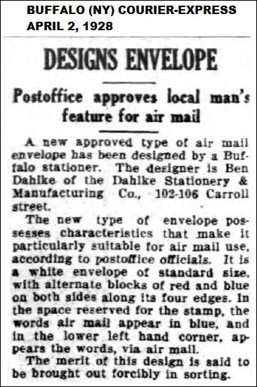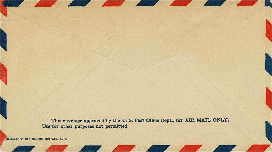The above cover was approved by the U.S. Post Office Department, based on a design produced by Ben Dahlke. See below for more information related to Ben Dahlke (Excerpts from the Buffalo Courier-Express (New York).
