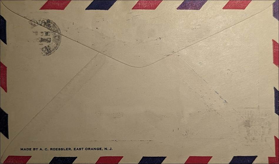 First Day Cover by A.C. Roessler, Cachetmaker. Albert C. Roessler (1883-1952) was a stamp dealer who was best known for his cacheted covers, and examples of his work are sought by collectors. Within a few years he was established as a stamp dealer in east Orange, N.J., after a period of Nassau Street (New York) activity. With the coming of air mail in the US in 1918, Roessler began the creation of cacheted covers. Roessler is known for his unique border graphics, original artwork, and rubber-stamped cachets used for both FDC and first flight covers.