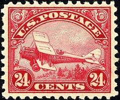 First Day Cover – The cachet shows an Airco (designed by Geoffrey de Havilland) D.H.4 aircraft adopted by the US Post Office to carry airmail. In 1919, the DH-4B was standardized by the US Post Office, being modified to be flown from the rear cockpit with a 180 kg watertight mail compartment replacing the forward cockpit. The airmail DH-4B aircraft were later modified with revised landing gear and an enlarged rudder. DH-4s were used to establish a coast-to-coast, transcontinental airmail service, between San Francisco and New York, a distance of 4,310 km, involving night flight, the first services starting on 21 August 1924. The DH-4 continued in Post Office service until 1927, when the last airmail routes were passed to private contractors.
