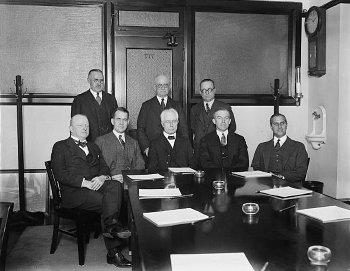 Picture of the delegates to the International Civil Aeronautics Conference.On the afternoon of 17 December 1928, the Delegates to the ICAC arrived at the Kill Devil Hills (at Kitty Hawk, N.C., USA) memorial site, twenty-five years after the Wrights' historic flight. At two o'clock, Secretary of War Dwight F. Davis laid the cornerstone of the planned national monument at the top of the dune. Senator Hiram Bingham, president of the National Aeronautical Association, spoke and unveiled an inscribed ten-ton granite boulder to mark the site. The delegates' final arrival in Washington, D.C., from Kitty Hawk marked the last official activity related to the conference. The picture of the aviation pioneer’s group was taken at Langley Memorial Aeronautical Laboratory (Virginia, USA), established in 1917 by the National Advisory Committee for Aeronautics (NACA) and named for aviation pioneer Samuel Pierpont Langley.