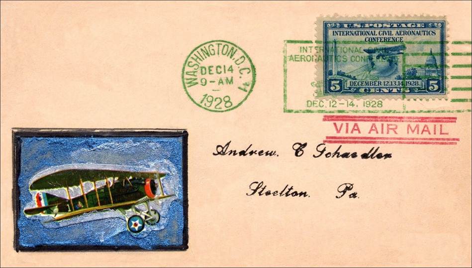 First Day Cover on stationery from the Aero Philatelic Society in Chicago.