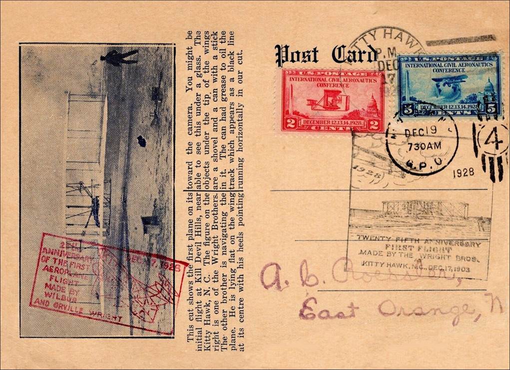 1928 Roessler - Wright Brothers 25th Anniversary First Flight Card (Front and Back).