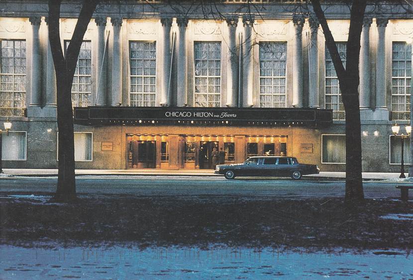 Front of the CHICAGO HILTON and Towers Hotel in the years 2000.