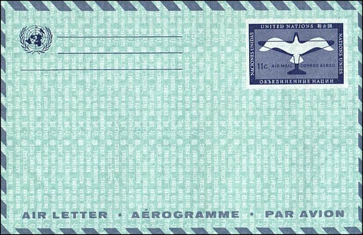 United Nations – 1 November 1965 20th anniversary of ICAO Cancel with slogan Postal stationery UN New York Air letter issued on 18 January 1960 |