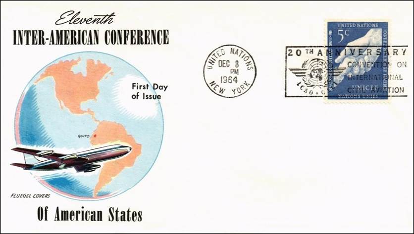 United Nations – 8 December 1964 20th anniversary of ICAO Cachet commemorating the 11th Inter-American Conference of American States