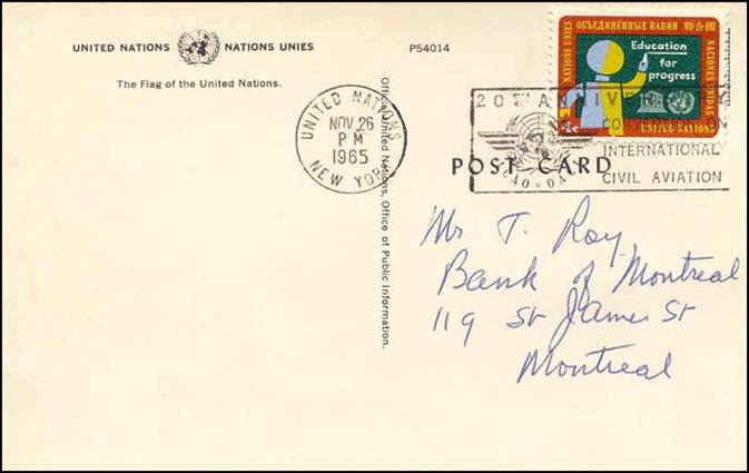 United Nations – 26 November 1965 20th anniversary of ICAO Cancel with slogan |