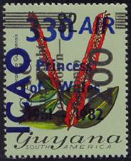 Guyana - 6 September 1984 Original stamps were overprinted and/or surcharged three times. |