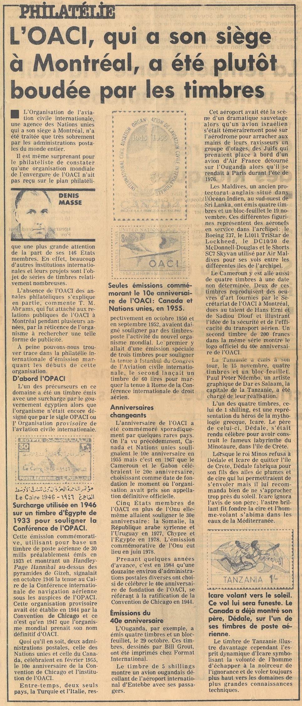 La Presse Newspaper – Philatelic story by Denis Masse, renowned Philatelist – Saturday 8 December 1984.
