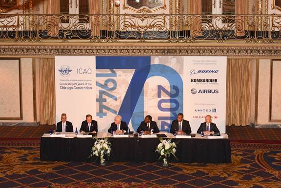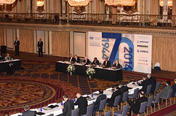 Extraordinary Session of the ICAO Council held in Chicago on 8 December 2014, in the very same Ballroom in the now Chicago Hilton (formerly the Stevens Hotel) where the Convention on International Civil Aviation was signed 70 years earlier. With the participation of United Nations Secretary General Ban Ki-moon and many other dignitaries.