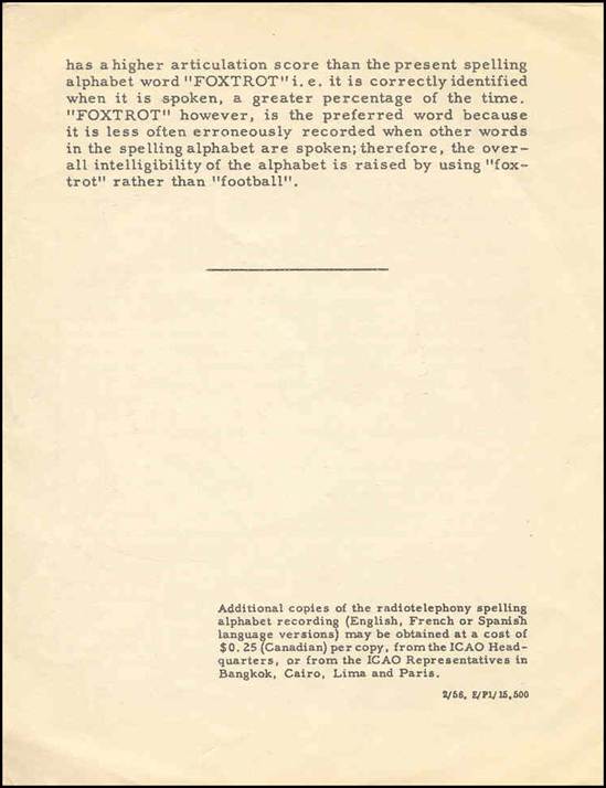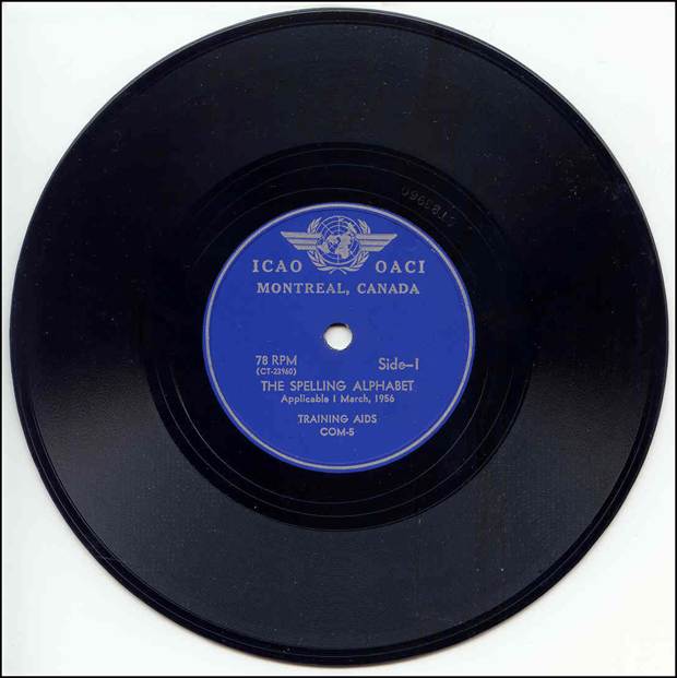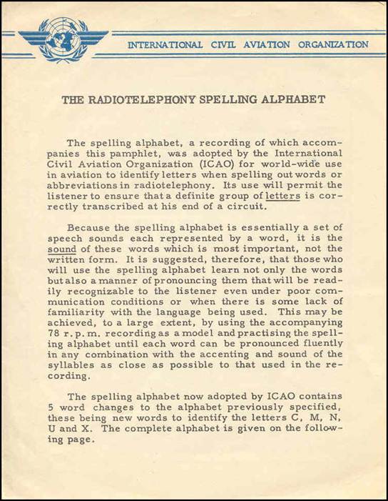 ICAO Phonograph recording (with the 4-page accompanying pamphlet) illustrating the correct way of pronouncing the words of the new Radiotelephony Spelling Alphabet, distributed to all countries in November 1955 when the alphabet was introduced.