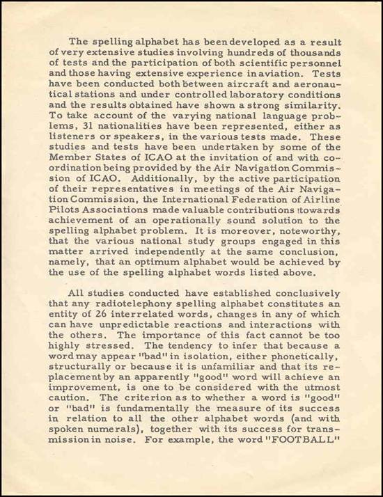 2. It had to be easily pronounced and recognized by airmen of all languages, clearly transmissible by radio and easy to read;