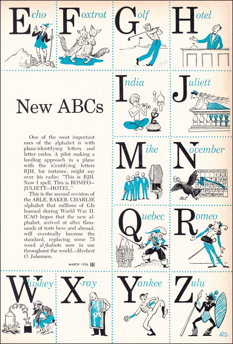 Art Cartoons - 1956 ICAO Alphabet by Artist Carl Rose.